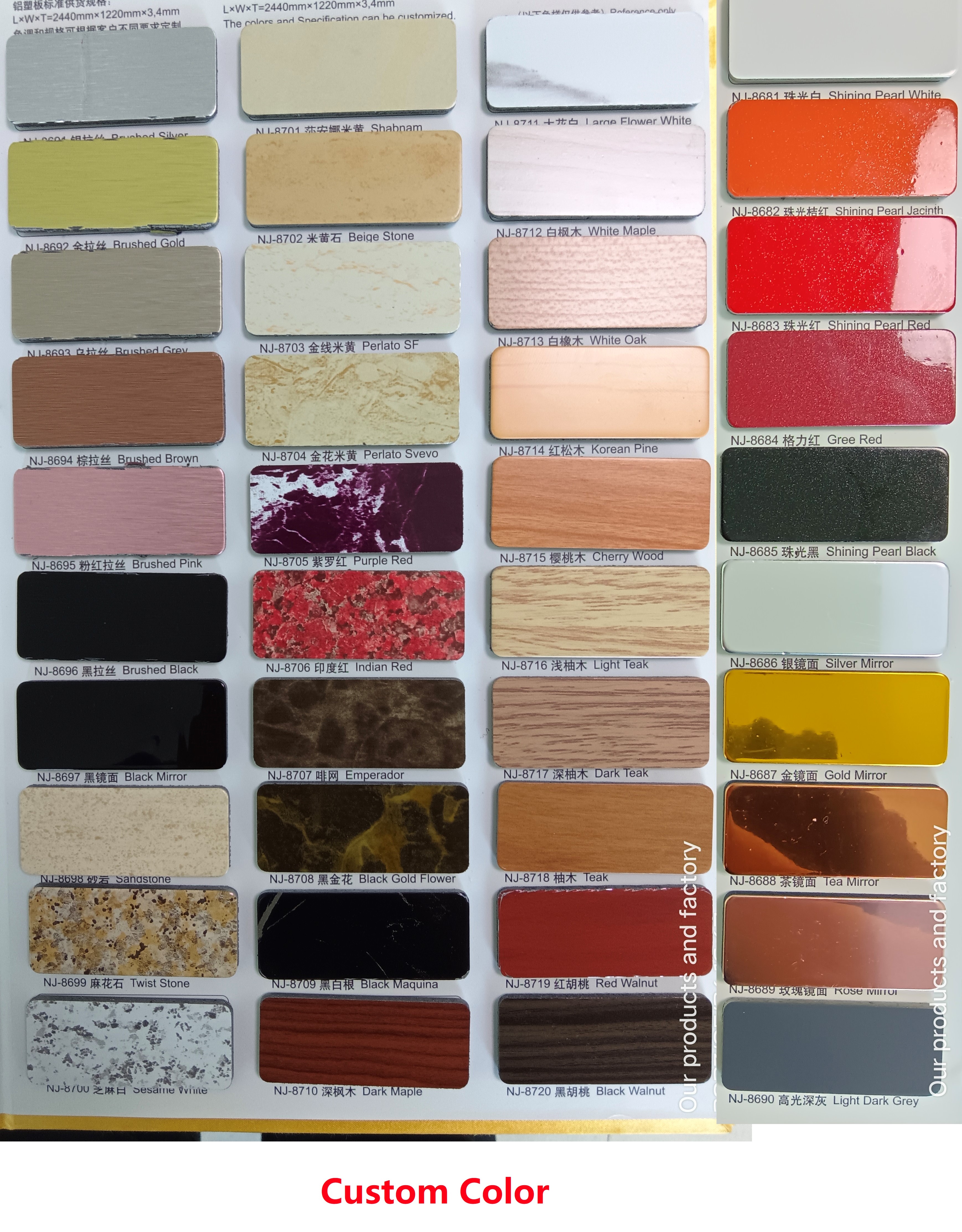 Ngoài ra, tấm nhôm composite phủ PE có thể dễ dàng gia công, chế tạo và lắp đặt nhanh chóng. Nó thanh lịch và tráng lệ, và tính linh hoạt tốt của nó làm cho nó phù hợp với nhiều thiết kế khác nhau. Nó cũng được đặc trưng bởi việc dễ dàng bảo trì và làm sạch đơn giản. nhẹ và chắc/để chọn màu/trang trí lộng lẫy và đầy màu sắc, hoa văn và thiết kế trang trí có thể được tùy chỉnh.- Màu sắc đa dạng và dễ bảo trì